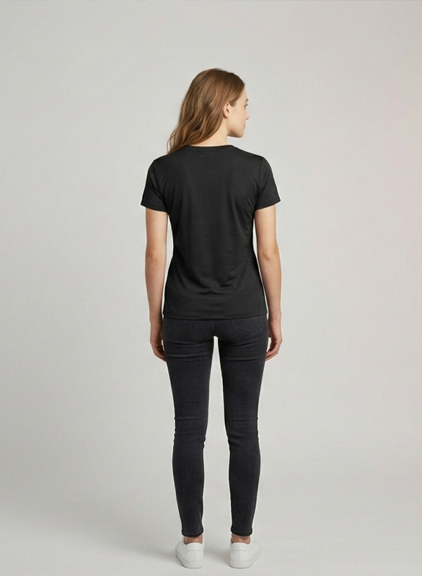 The Adidas Dri Fit LTS 913 – Women’s Black Performance Tee is designed for active women who want both performance and style. Made with moisture-wicking fabric, this lightweight tee helps keep sweat away from the skin, ensuring you stay dry and comfortable during workouts or daily activities.